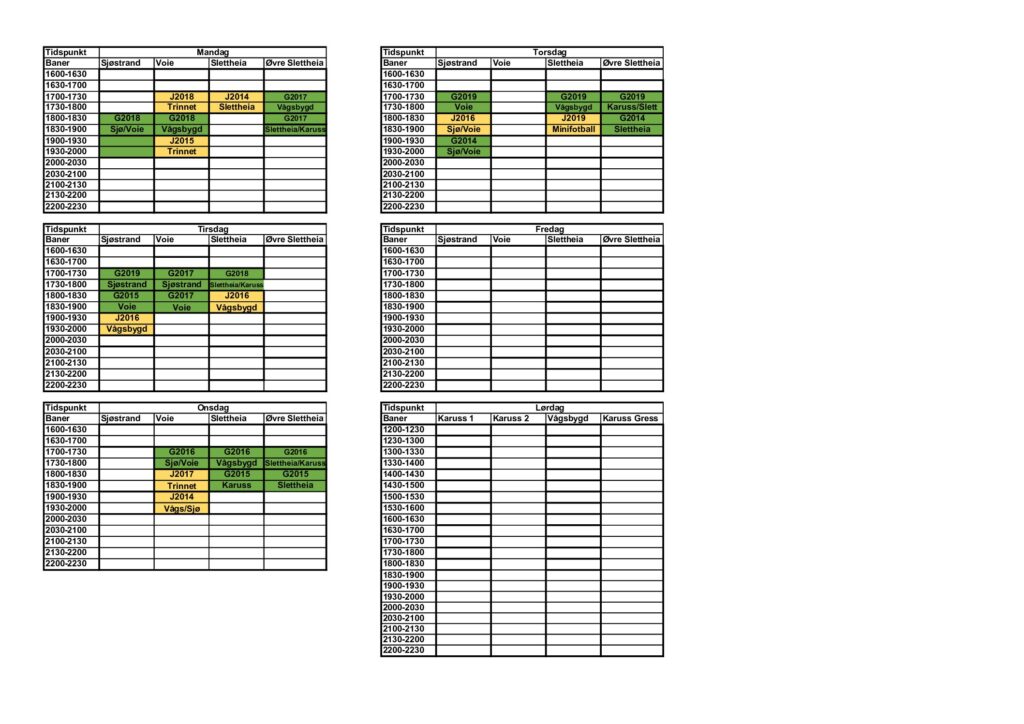 Det er mulig å bytte tider internt, men eventuelle endringer må meldes inn til sportslig leder Joachim på epost til joachim@vagfk.no.