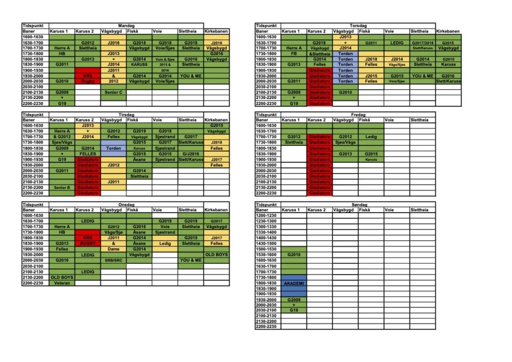 Vedlagt ligger treningstidene som er gjeldende fra vinteren 2025 – 2026. Tildelingen er fra kommunen og vi har gjort vårt beste for å prøve å ivareta alle lags ønsker så godt det har vært mulig.